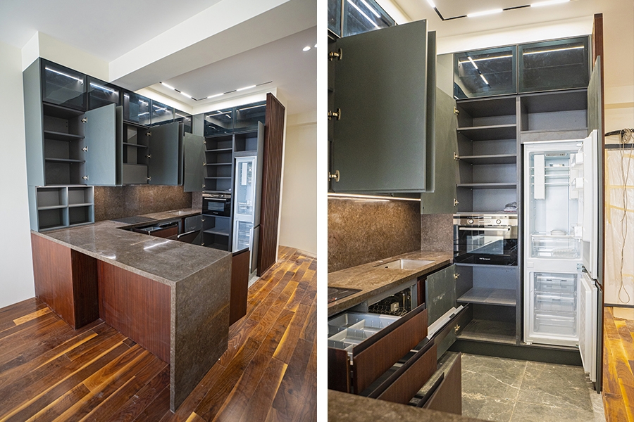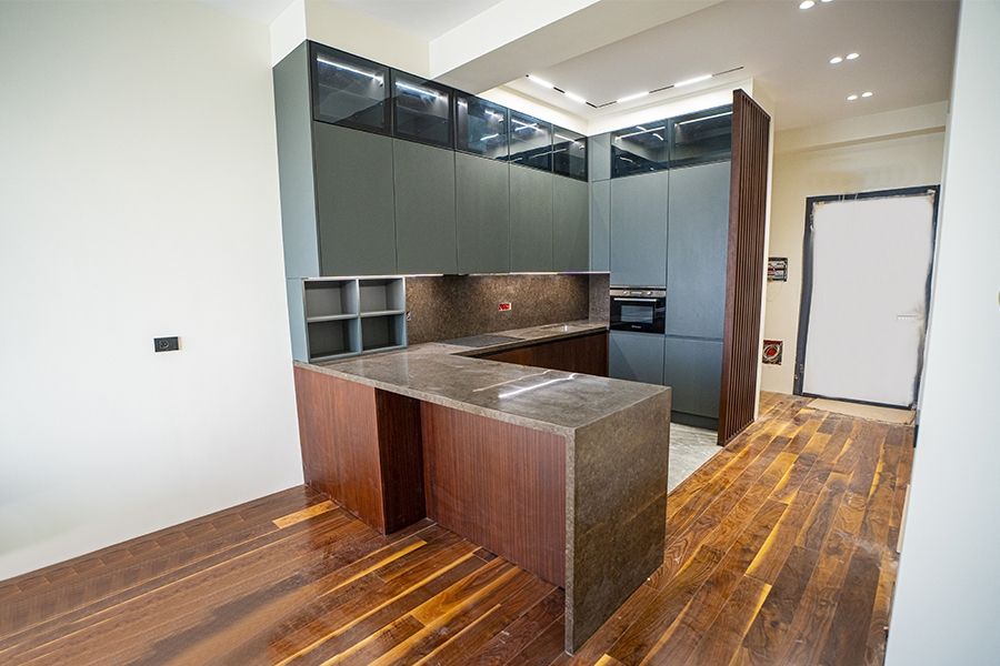 Bu mətbəx layihəsi estetik görünüşlə funksionallığı birləşdirərək, zövq, keyfiyyət və rahatlığın mükəmməl balansını təqdim edir.