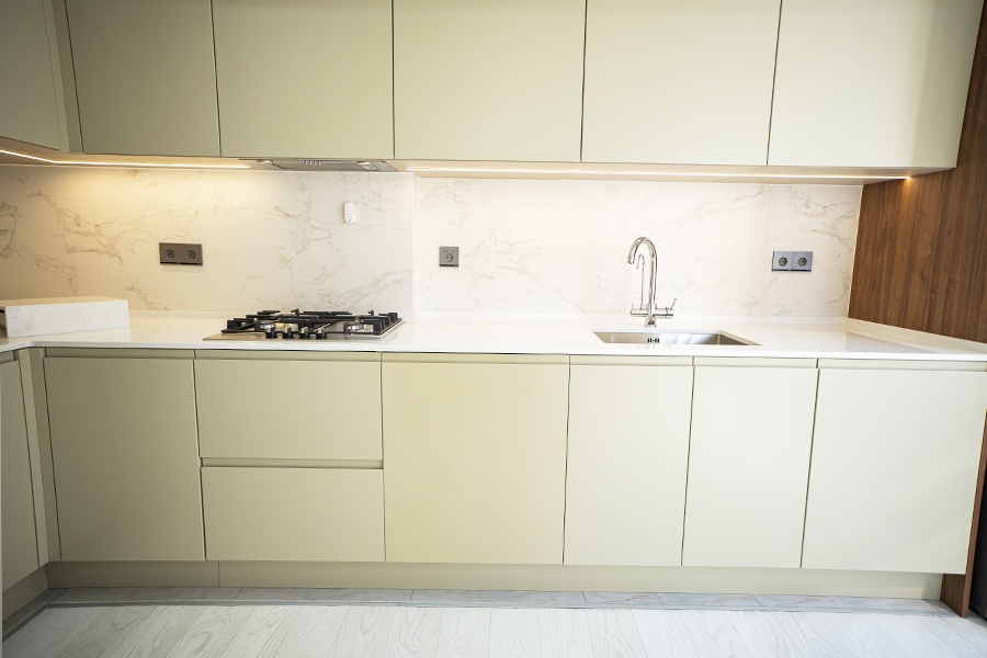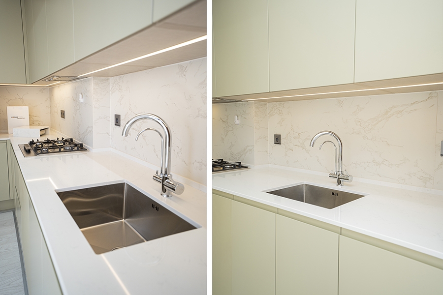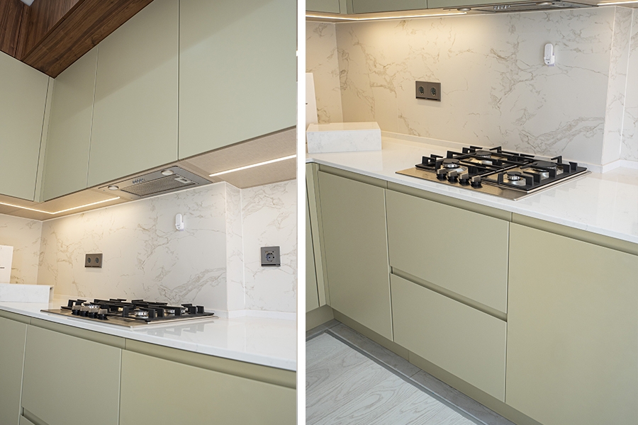 Dəzgah səthi, “Miracle Stone” kolleksiyasına daxil olan yüksək keyfiyyətli kvars materialından hazırlanıb. Cızılmalara, ləkələrə və istiyə qarşı dayanıqlı olan bu material həm estetik, həm də praktik baxımdan ideal seçimdir və uzunömürlülüyü ilə seçilir.
