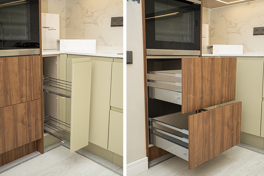Mebeldə rahat istifadə üçün nəzərdə tutulmuş qaşıqlıq, tullantı qabı və kargo mexanizmi kimi detallara xüsusi diqqət verilib. Hər detal gündəlik istifadədə maksimum komfort yaratmaq üçün düşünülüb.