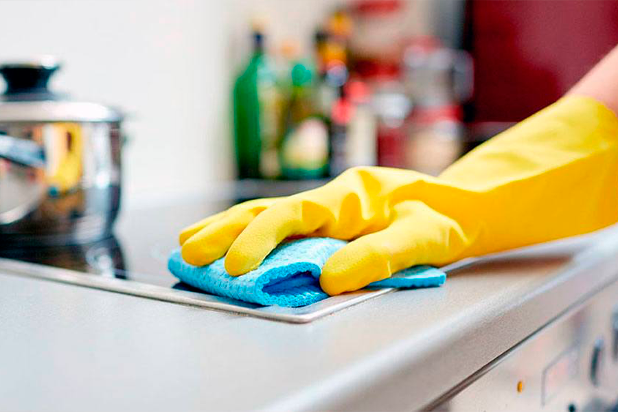 При необходимости поверхность протирают мягкой тряпкой, смоченной в теплой воде с моющим средством. Остатки раствора удаляют тряпкой, смоченной в чистой воде, затем поверхность протирают насухо.
